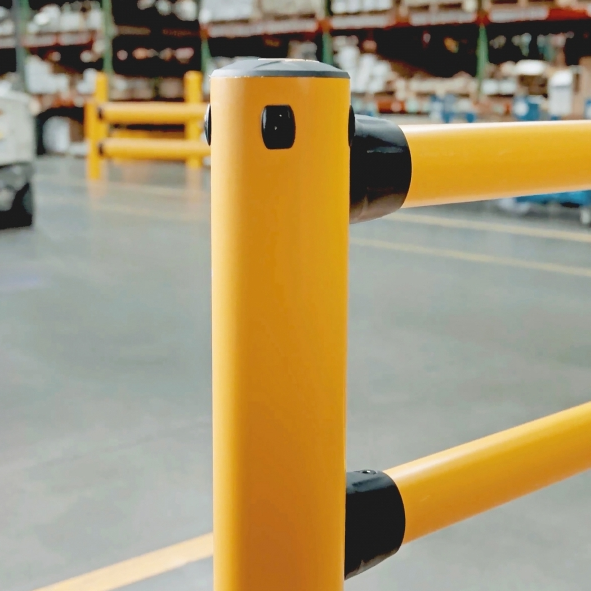 Ochranné zábradlí FLEX+ S-Line poskytuje ochranu všude, kde se protínají chodci, vnitřní provoz a pracovní prostory. Zajišťuje bezpečné oddělení chodníků, příjezdových cest a pracovních prostor a používá se ve skladech, výrobních zařízeních a logistických centrech podél dopravních tras, v prostorách pro vychystávání objednávek a na pracovištích. Důraz je kladen na jasně viditelné vymezení mezi dopravními trasami a pracovními zónami. Místo pevných bariér se systém spoléhá na řízené pohlcování: V případě nárazu zábradlí absorbuje energii, rozloží síly po celé ochranné linii a poté se automaticky vrátí do původního tvaru. Tím se zachovává jak ochranná funkce, tak viditelnost – i po kontaktu. Polymerové příčné nosníky řady S-Line tvoří v ergonomické výšce dobře viditelnou, souvislou ochrannou linii. Tlumí nárazy, absorbují energii a zabraňují nekontrolovatelnému vjezdu vozidel do pěších zón. Sloupky absorbují přenášené síly a zajišťují stabilitu podél celé ochranné linie. Výsledkem je zvýšená bezpečnost osob, snížené riziko zranění a bezpečnější pracovní prostory. Technologie připojení FlexLink zajišťuje, že síly nejsou soustředěny v jednom bodě, ale jsou rovnoměrně rozloženy. Tím se snižuje namáhání jednotlivých komponentů, stejně jako země a kotevních bodů. Výsledkem jsou trvale stabilní ochranná linie bez uvolněných sloupků nebo poškození země. Základna FLEX+ spojuje sloupky s zemní kotvou Base a vytváří tak nárazuvzdorný vnější plášť. Ten chrání vnitřní šrouby a zabraňuje poškození pneumatik průmyslových vozíků. Výsledkem je vysoká každodenní použitelnost a snížená údržba. Zemní kotva FLEX+ Base kombinuje robustní ukotvení v betonu s pryžovými tlumiči absorbujícími sílu. Tato konstrukce snižuje namáhání šroubového spoje, chrání podlahu a zajišťuje trvale stabilní upevnění – i při opakovaném zatěžování a uvolňování. FLEX+ je navržen pro každodenní použití. I po opakovaných nárazech zůstává systém funkční. Žádná trvalá deformace. Odolný plast díky vysoké elasticitě. To výrazně snižuje prostoje a následné náklady. Řada S-Line je obzvláště vhodná pro oblasti s vysokou frekvencí chodců: oddělení chodníků a dopravních ploch, zabezpečení pracovišť podél tras pro vysokozdvižné vozíky, vychystávání objednávek, balení, montáž a křižovatky. Možnost rozšíření pomocí doplňujících dílů