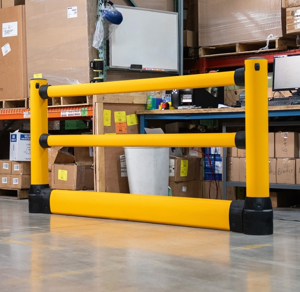 Ochranné zábradlí FLEX+ S-Line poskytuje ochranu všude, kde se protínají chodci, vnitřní provoz a pracovní prostory. Zajišťuje bezpečné oddělení chodníků, příjezdových cest a pracovních prostor a používá se ve skladech, výrobních zařízeních a logistických centrech podél dopravních tras, v prostorách pro vychystávání objednávek a na pracovištích. Důraz je kladen na jasně viditelné vymezení mezi dopravními trasami a pracovními zónami. Místo pevných bariér se systém spoléhá na řízené pohlcování: V případě nárazu zábradlí absorbuje energii, rozloží síly po celé ochranné linii a poté se automaticky vrátí do původního tvaru. Tím se zachovává jak ochranná funkce, tak viditelnost – i po kontaktu. Polymerové příčné nosníky řady S-Line tvoří v ergonomické výšce dobře viditelnou, souvislou ochrannou linii. Tlumí nárazy, absorbují energii a zabraňují nekontrolovatelnému vjezdu vozidel do pěších zón. Sloupky absorbují přenášené síly a zajišťují stabilitu podél celé ochranné linie. Výsledkem je zvýšená bezpečnost osob, snížené riziko zranění a bezpečnější pracovní prostory. Technologie připojení FlexLink zajišťuje, že síly nejsou soustředěny v jednom bodě, ale jsou rovnoměrně rozloženy. Tím se snižuje namáhání jednotlivých komponentů, stejně jako země a kotevních bodů. Výsledkem jsou trvale stabilní ochranná linie bez uvolněných sloupků nebo poškození země. Základna FLEX+ spojuje sloupky s zemní kotvou Base a vytváří tak nárazuvzdorný vnější plášť. Ten chrání vnitřní šrouby a zabraňuje poškození pneumatik průmyslových vozíků. Výsledkem je vysoká každodenní použitelnost a snížená údržba. Zemní kotva FLEX+ Base kombinuje robustní ukotvení v betonu s pryžovými tlumiči absorbujícími sílu. Tato konstrukce snižuje namáhání šroubového spoje, chrání podlahu a zajišťuje trvale stabilní upevnění – i při opakovaném zatěžování a uvolňování. FLEX+ je navržen pro každodenní použití. I po opakovaných nárazech zůstává systém funkční. Žádná trvalá deformace. Odolný plast díky vysoké elasticitě. To výrazně snižuje prostoje a následné náklady. Řada S-Line je obzvláště vhodná pro oblasti s vysokou frekvencí chodců: oddělení chodníků a dopravních ploch, zabezpečení pracovišť podél tras pro vysokozdvižné vozíky, vychystávání objednávek, balení, montáž a křižovatky. Možnost rozšíření pomocí doplňujících dílů